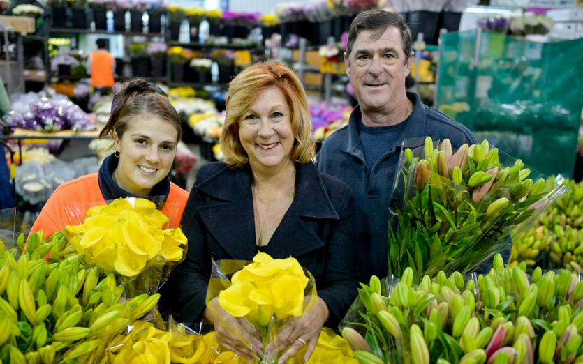 Cassandra, Vicki and Sam Dominello at Sydney Flower Market