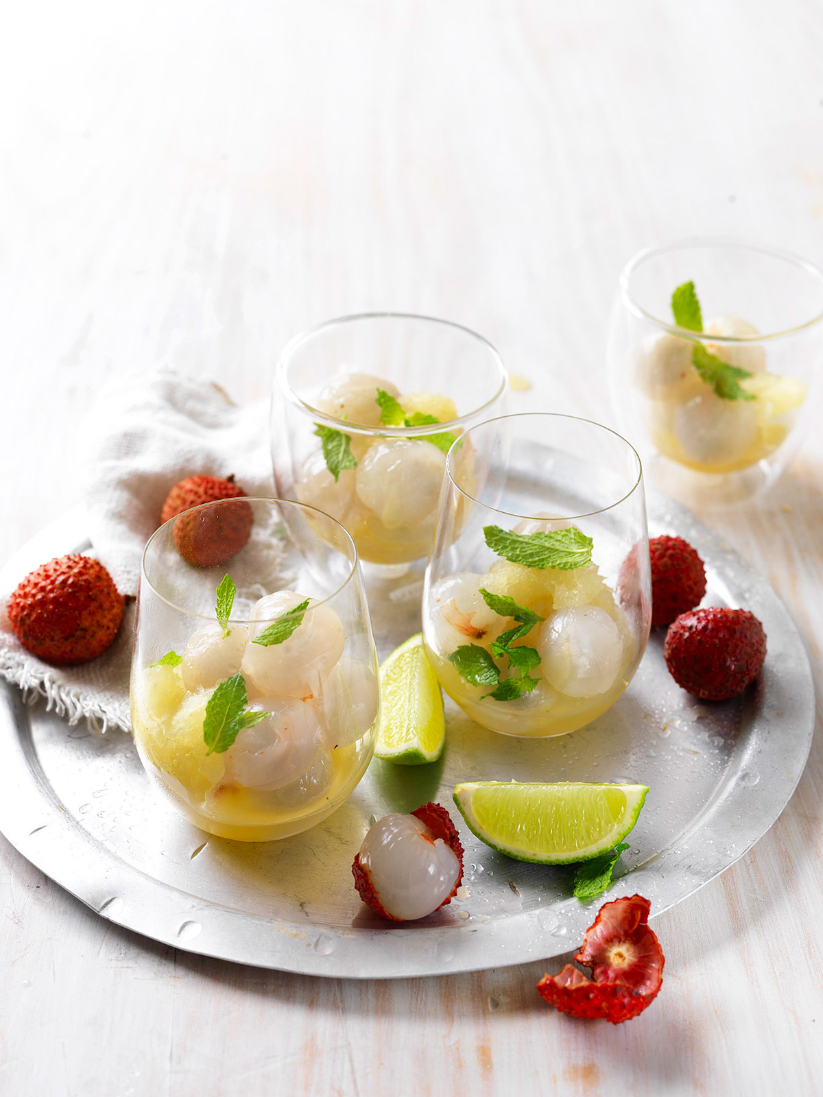 Lychees with lime & mint ice