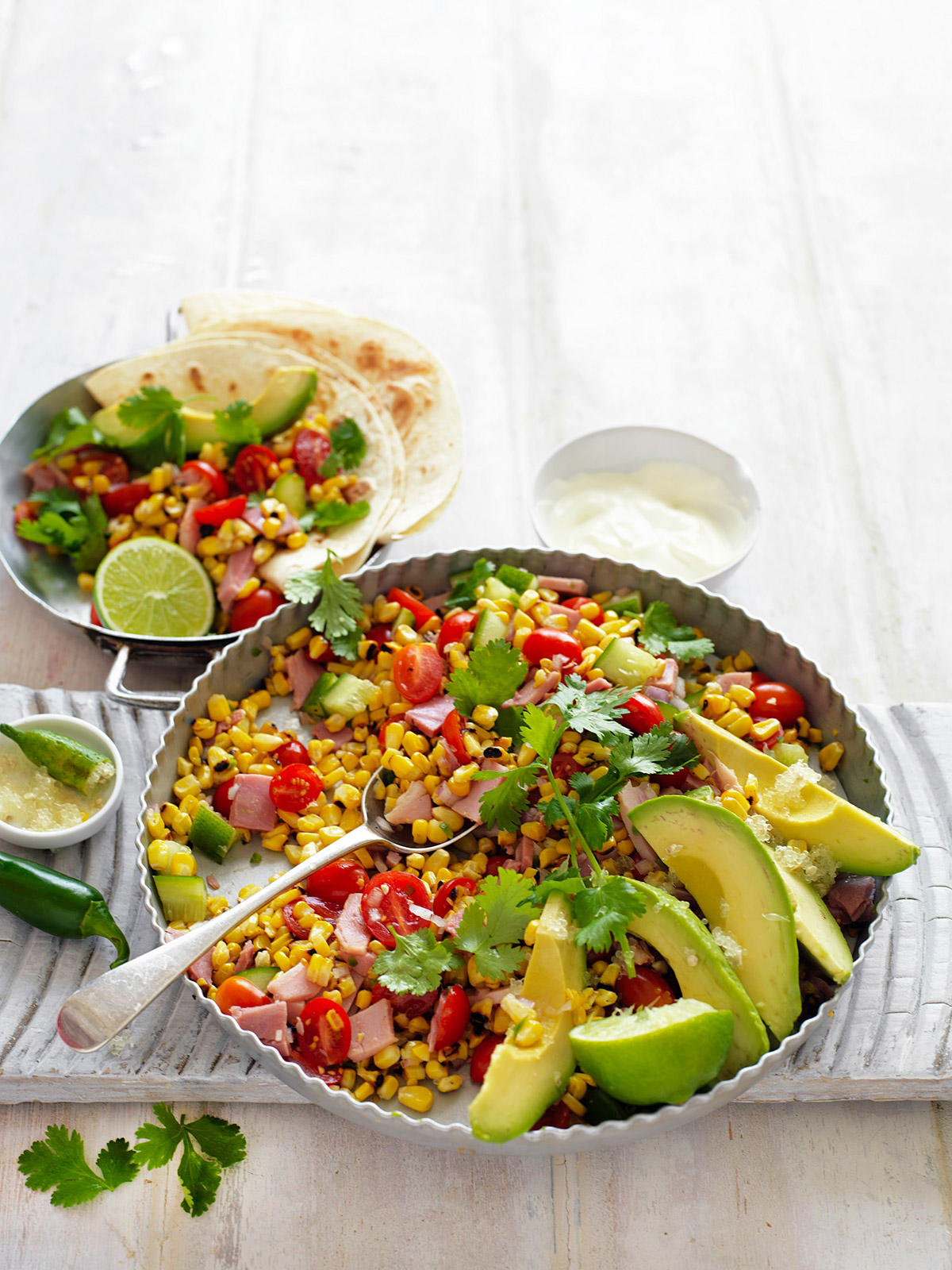 Mexican grilled sweetcorn, avocado & ham salad