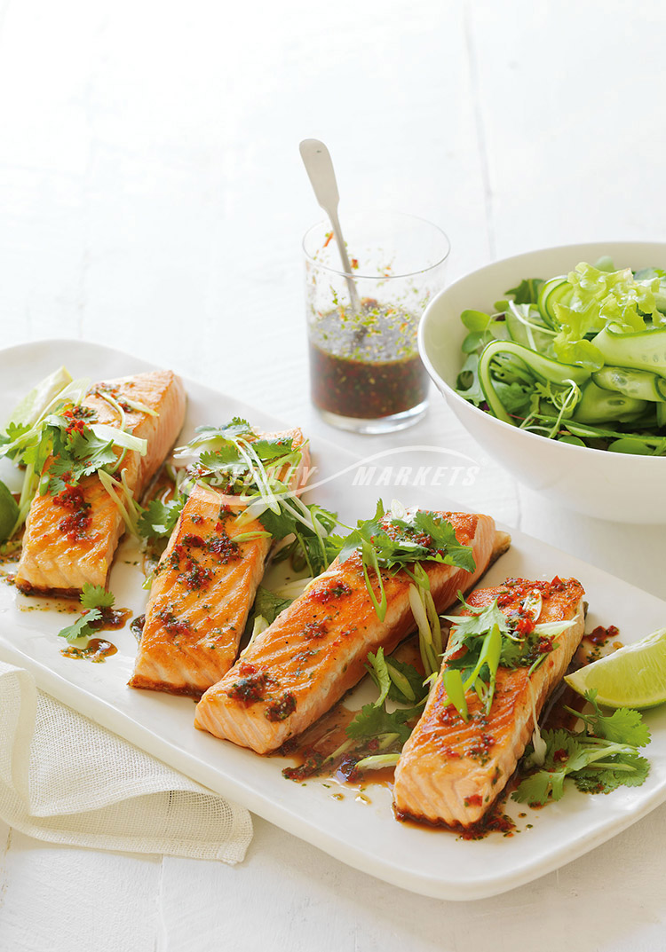 Chilli & coriander sauce with salmon